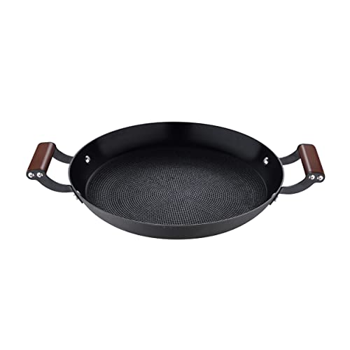 MasterPRO Odin 32 cm rund grill, non-stick, ergonomiska handtag av akaciaträ, idealisk för grillning, induktions- och ugnssäker