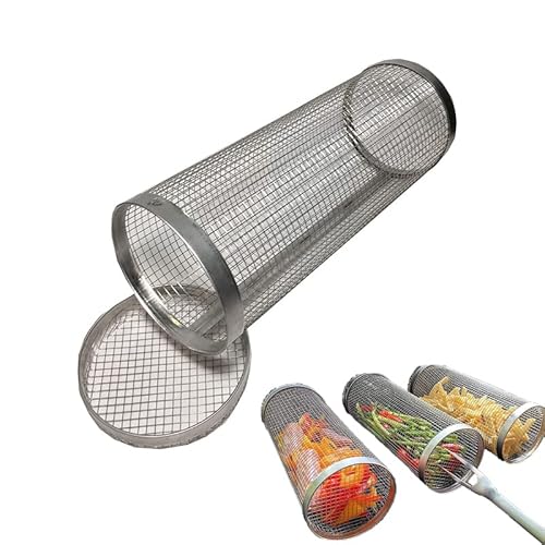 Flintronic 2024 x ny 2 st rullande grillkorg, rostfritt stål trådnät cylindergrillställ, bärbar utomhuscamping grillkorg för grönsaker, fisk, rund grill matlagningstillbehör