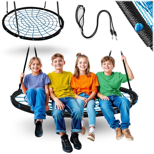 PHIBER-SPORTS bogggunga utomhus barn – Ø 100 cm – med kudde handtag + justerbar höjd – väderbeständig och hållbar – tallriksgunga nätgunga gunga gunga rund inomhus