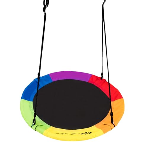 Fantask gunga, utomhus, barngunga, trädgunga, hängande gunga, kan belastas upp till 150 kg, rund gunga med 100 cm (färgglad)