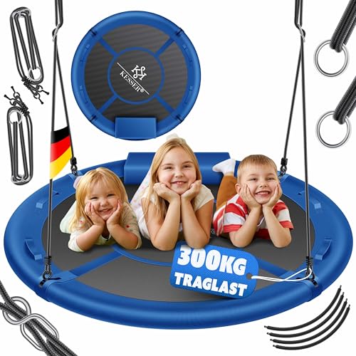 KESSER® Bogggunga tallriksgunga hängande gunga, rund gunga Ø 120 cm, gunga upp till 300 kg, kan belastas med kudde och 4 handtag, justerbar barngunga inomhus och utomhus, för barn och vuxna, blå