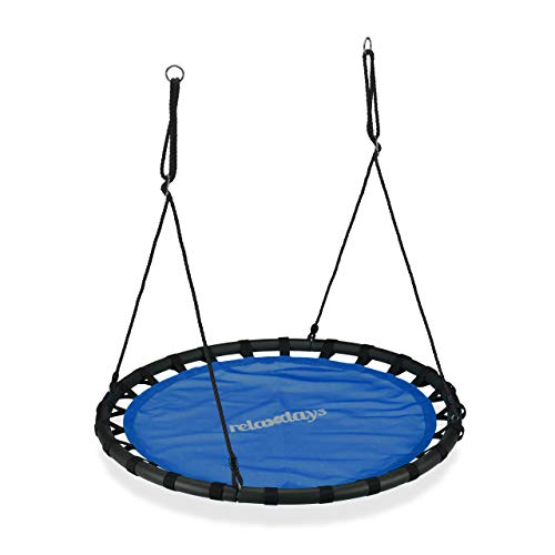 Relaxdays Nestgunga, rund hängande gunga, för barn och vuxna, justerbar, utomhus, Ø: 120 cm, upp till 100 kg, blå