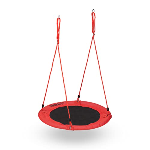 Relaxdays Nestgunga, rund hängande gunga Ø 90 cm, barn och vuxna, justerbar, upp till 100 kg, utomhus och inomhus, röd