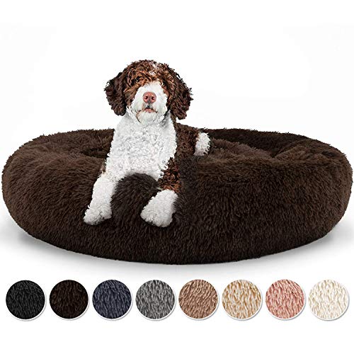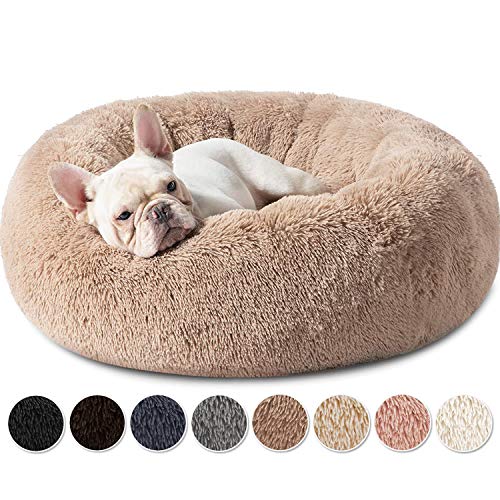 BVAGSS ångest hundsäng, rund plysch munk hundbädd kattbädd marshmallow fluffig mysig tvättbar lugnande valpbädd för små/medelstora hundar XH034 (diameter: 60 cm, ljusbrun)