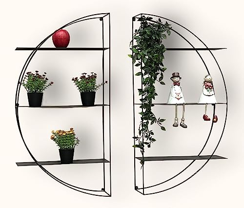Industriell metallvägghylla, rund flytande hylla med 3 metallnätpaneler, med 2 skruvar
