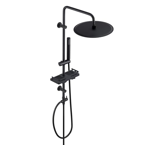 Görbach Regndusch, duschsystem med hylla, rostfritt stål duschset utan armatur med XXL-huvuddusch, rund, svart (D30 cm)