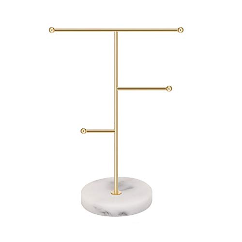 Jodsen Smyckesorganisatör, metall, T-formad, halsbandsstativ, örhänge för hemmet, hängande regel med marmormönster, rund hylla för armband, ringar, klockor