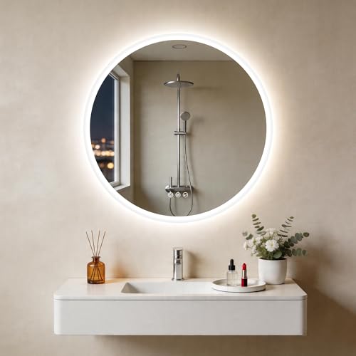 STARLEAD 800 mm rund badrumsspegel med LED-lampor, Bluetooth, anti-dimma, LED-badrum-väggmonterad-spegel 3 färger dimbar, HD härdat glas, minnesfunktion, IP44 vattentät