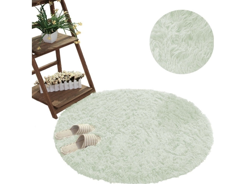Rohatim Matta med lång lugg, rund, vardagsrum, supermjuk lurvig matta, fluffig, sovrumsmattor, barnmatta (vit, 150 x 150 cm)