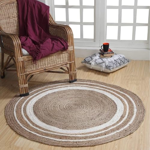 Ripaz Vogue rund matta med bomullskant handflätad bondgårdsjute, matta för heminredning (150 x 150 cm (5 x 5 fot))