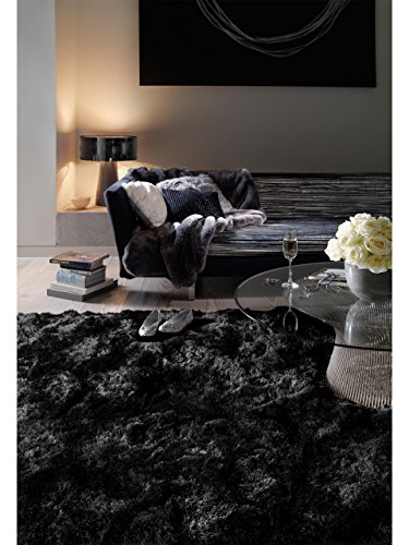 Rohatim Matta med lång lugg, rund, vardagsrum, supermjuk lurvig matta, fluffig, sovrumsmattor, barnmatta (svart, 150 x 150 cm)