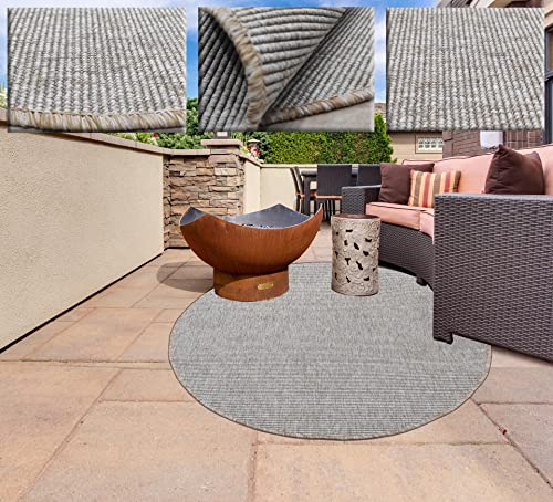 SANAT Utomhusmatta väderbeständig – matta för inomhus- och utomhusbruk – balkongmatta vattenavvisande – mattor för terrass, trädgård, kök, badrum eller vardagsrum – ljusgrå, 150 cm rund