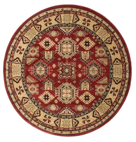 RugVista Ziegler Kaspin, Matta, / Kazak, Ø 150 cm, Rund, Medellång lugg, Vardagsrum, Matsal, Sovrum, Kök, Hall, Endast kemtvätt, oeko_tex_100, Röd