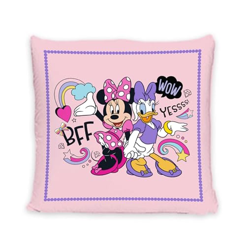Disney Home Mimmi Pigg och tusensköna anka – dekorativ kudde med fyllning 40 cm rund – prydnadskudde för pojkar och flickor, bra dekorativ kudde för babyrum, barnrum, soffa, soffa – mjuk gosig kudde