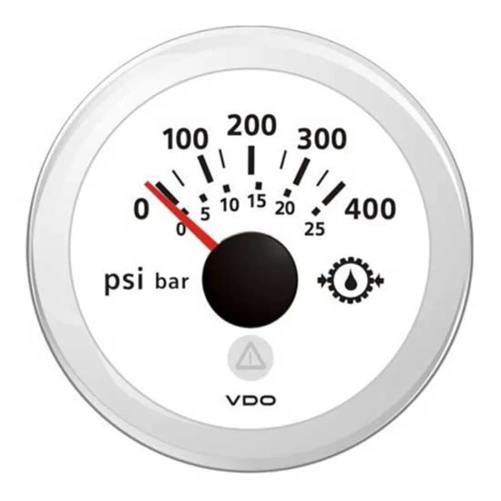 Vdo 0-400 Psi 10-184 Ohm Manometer För Oljetryck Med Dubbel Skala Och Rund Ram