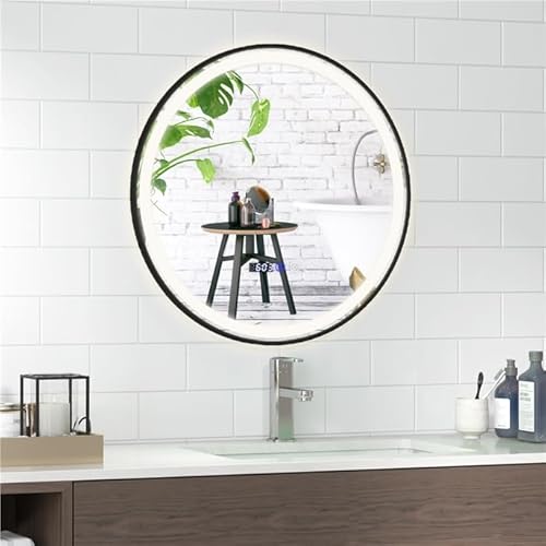 KWW Rund spegel badrum LED-upplyst spegel, upplyst dimbar anti-dimma väggmonterad sminkspegel med ljus (53 L x 63 W tum)