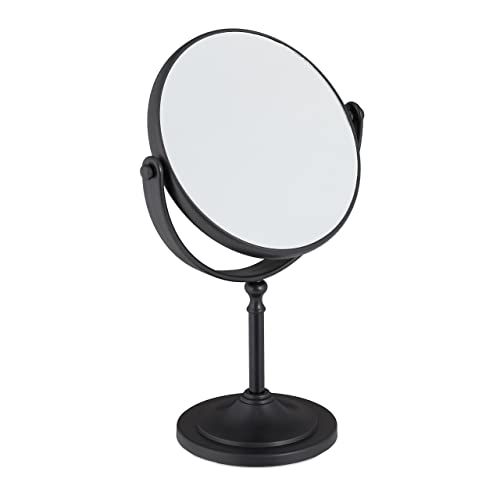 Relaxdays Sminkspegel, 2-vägs förstoring, dubbelsidig bordsspegel, 360° roterbar, rund, HBT 27,5 x 18 x 10,5 cm, svart