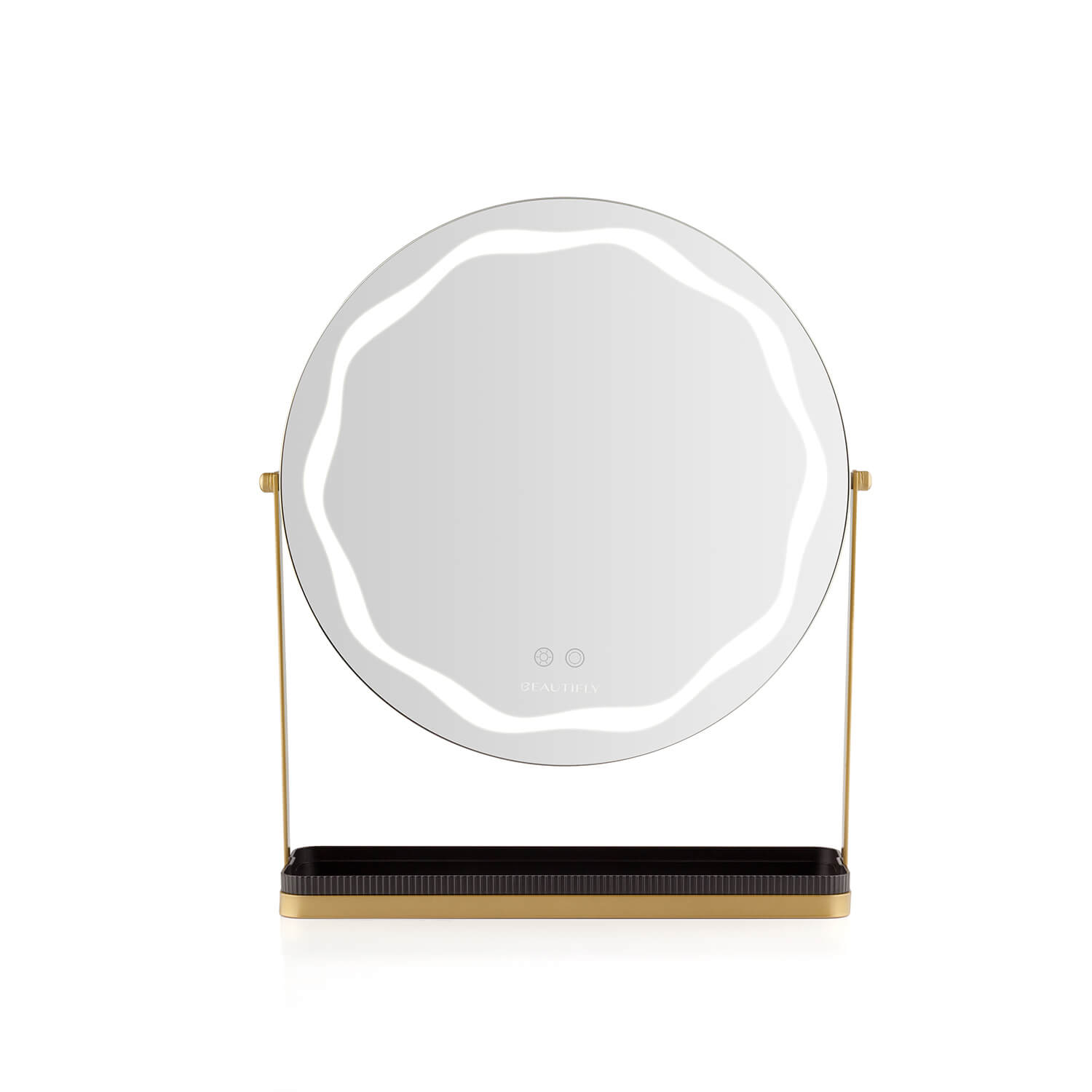 Spegel Sminkbord, Fristående Table Top Rakspegel, Sminkspegel Med Lampor, Light Up Spegel Sminkspegel Med Belysning 3 Färgtemperatur, Rund Svart Spegel ф50 Cm(Size:50cm,Color:Guld)