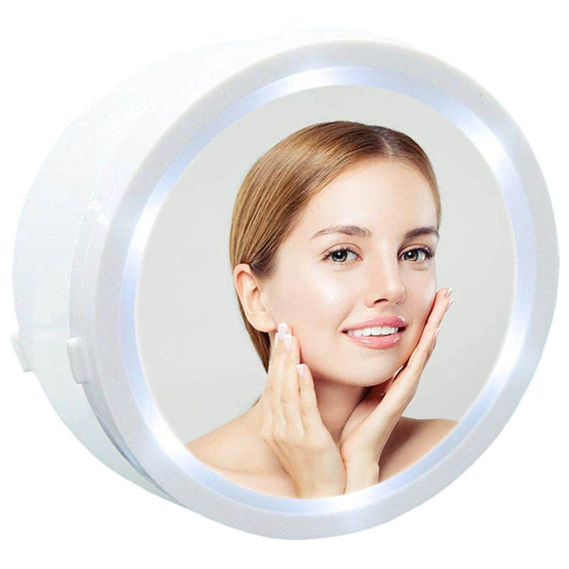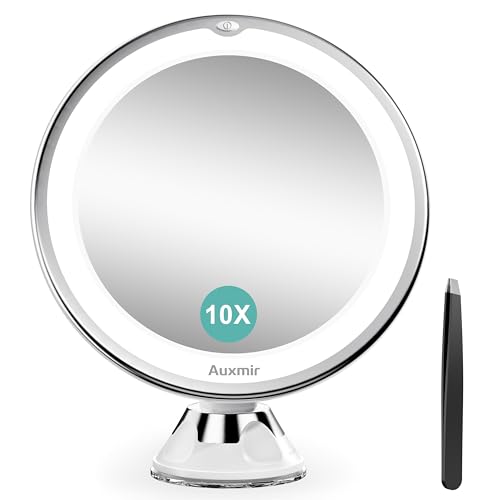 Auxmir Sminkspegel med LED-ljus, 10X Förstoring med Stark Sugkopp, Justerbar Ljusstyrka, 360° Roterbar, Bärbar för Vägg, Badrum, Resa, Hårborttagning och Ögonbryn, Vit, Rund