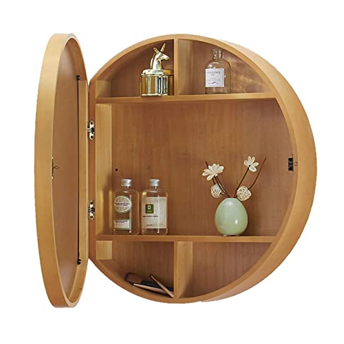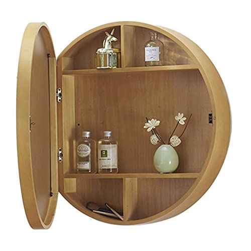 Spegelskåp Runt badrum Sminkspegel i trä med förvaringshylla Rund sminkspegel Spegelskåp (färg: trä, storlek: 50 cm/19,7 tum)