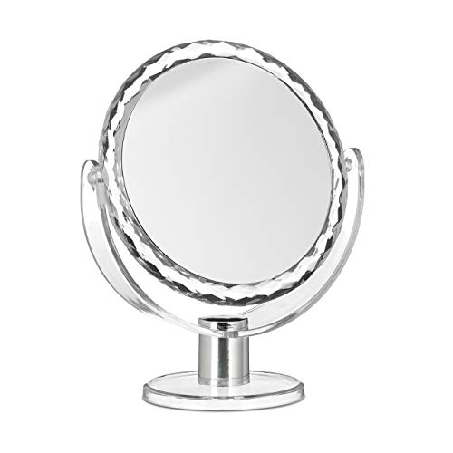 Relaxdays Sminkspegel förstoring, stående sminkspegel, rund sminkspegel, HBT: 23 x 19 x 10 cm, transparent