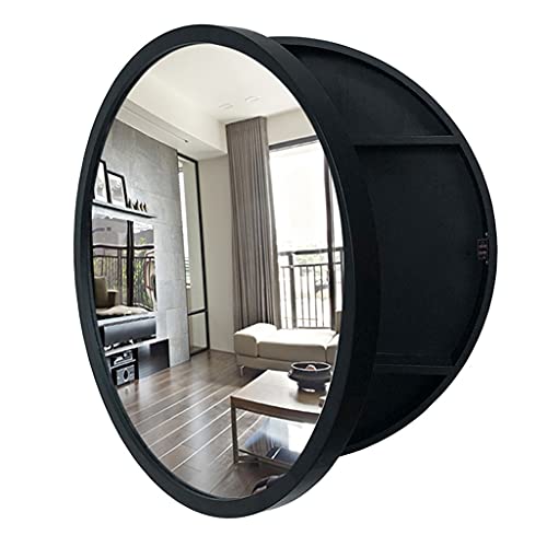 Spegelskåp Runt badrum Sminkspegel i trä med förvaringshylla Rund sminkspegel Spegelskåp (Färg: Svart, Storlek: 60 cm/23,6 tum)