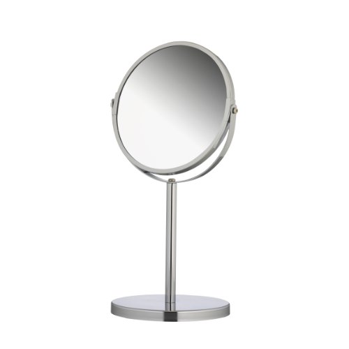 Fantasia Golvspegel rund – dubbelsidig, normal och 10 x förstoring, sminkspegel Ø 18 cm, höjd: 32 cm, kosmetisk spegel metall/silver