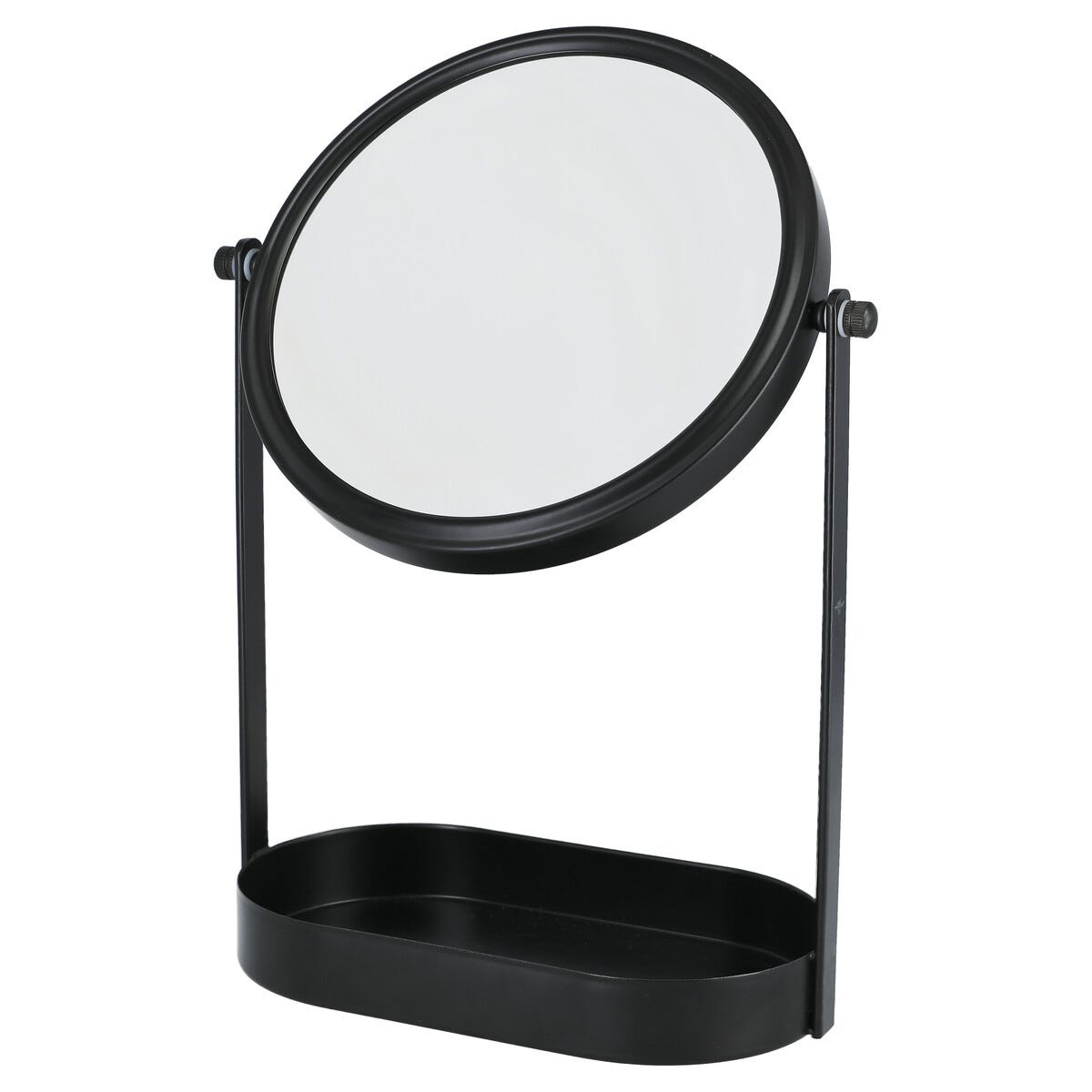 Clas Ohlson Rund sminkspegel med förstoring och förvaring, svart
