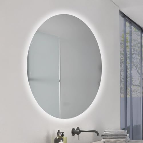 50cm LED Badrumsspegel, Badrumsspegel med Belysning Rund, Rund Spegel med naturlig vit bakgrundsbelyst LED lampa