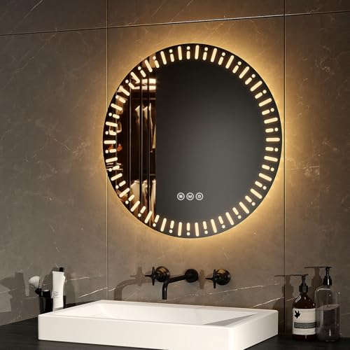 EMKE Rund badrumsspegel, LED-bakgrundsbelyst, diameter 50 cm, med imfri + touchströmbrytare + 3 variabla ljusfärger, modern dekorativ rund spegel, badrumsspegel