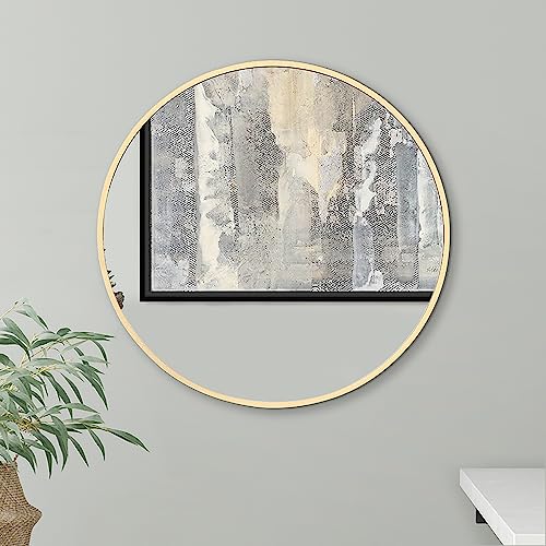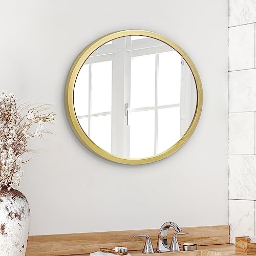 Americanflat 50 cm aluminium inramad guld rund spegel för vägg – cirkelspegel för sovrum, entré och vardagsrum väggdekor – badrumsväggspegel med hängande hårdvara ingår