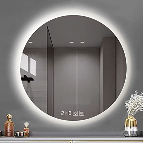 Badrumsspegel Med digital klocka och belysning, LED -väggspegel, Rund spegel, Justerbar ljusstyrka (Size : 80cm)