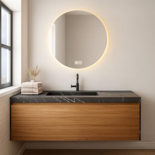 Bayt Badrumsspegel - ø 60 cm - Rund Spegel med Uppvärmning - Väggspegel med Belysning Imskyddssystem - Justerbar Ljusstyrka - 3 Ljuslägen - Anti-kondens - Dimbar (1 ljus) (1, Rund - 3 ljuslägen)