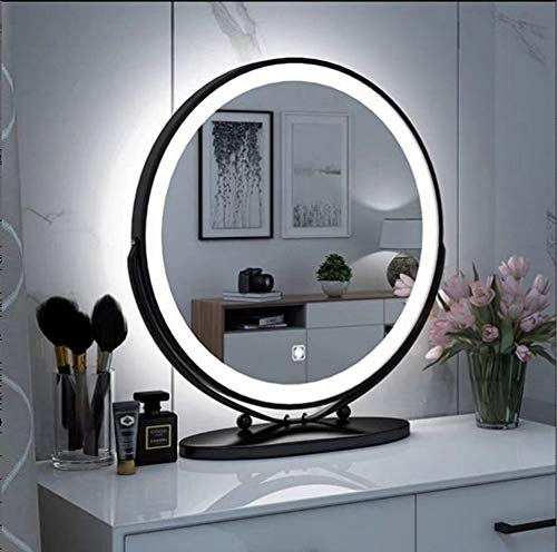 XUANYU Stor rund sminkspegel med belysning med metallram rörlig bordsspegel stående spegel, en mängd olika specifikationer (svart, 3 dimbara ljus, 50 cm roterbar)