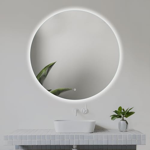 Kedia Badrumsspegel med belysning, väggmonterad spegel för badrum, LED-spegel, rund spegel med 3 ljusfärger (80 x 80 cm-B)