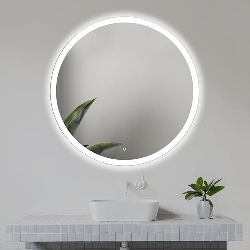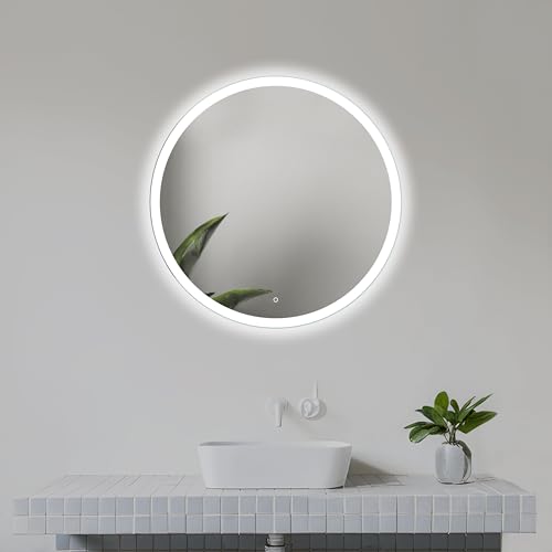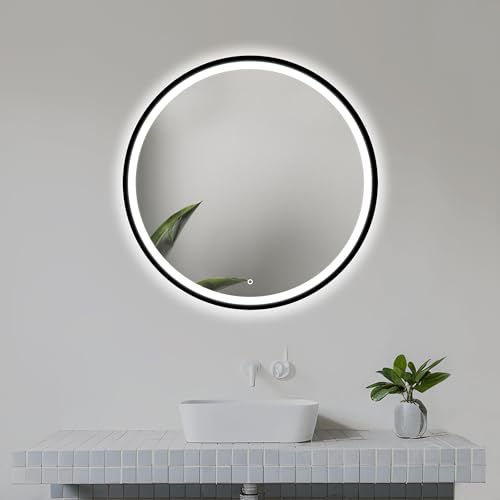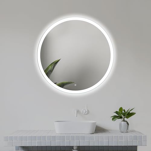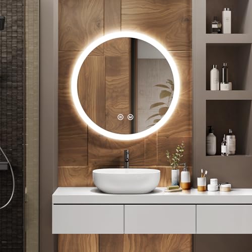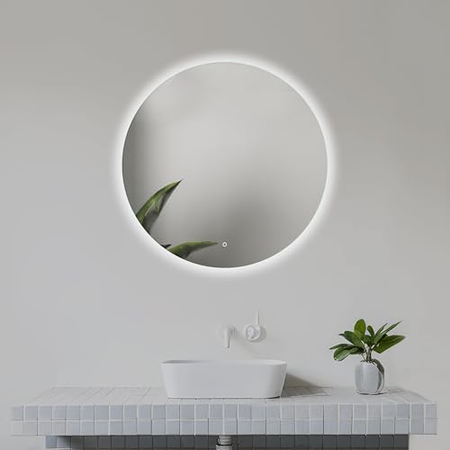 EMKE Badrumsspegel med belysning, diameter 60 cm, rund spegel med beröringsomkopplare, dimljus, minnesfunktion, varmt/kallt vitt/neutralt ljus