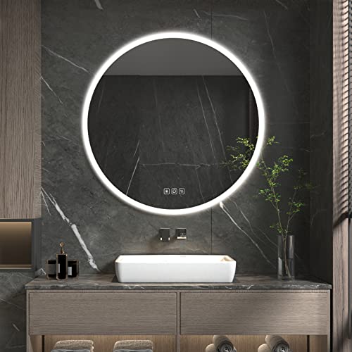 AYYDS spegel med belysning, 60 cm rund LED-badrumsspegel, badrumsspegel med 3 ljusfärger dimbar och dimfunktion, väggspegel för badrum, vardagsrum, sovrum, hall, entré
