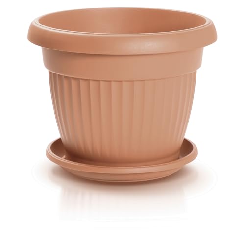 TERRA DCE50-POD41 Kruka Inomhus Krukor, Rund Vas med Undervas, för Inomhus eller Utomhus, Plast, för Balkong eller Trädgård, 38 L, 50 x 39 cm (Ø x H), Terrakotta Färg