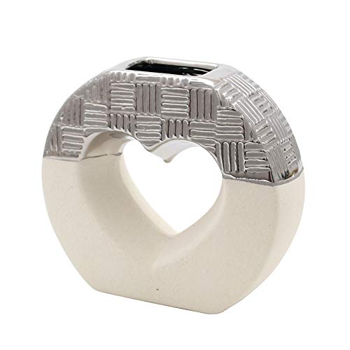 Dekohelden24 Elegant, modern dekoration, designer, keramisk vas rund med hjärta i grov silver, 17 cm