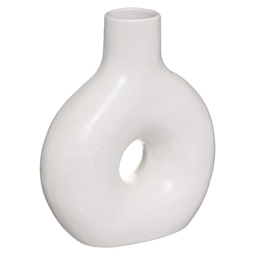 Rund vas med hål – blomkruka och dekoration, för vardagsrum och sovrum, keramik, 21 x 17 cm, vit