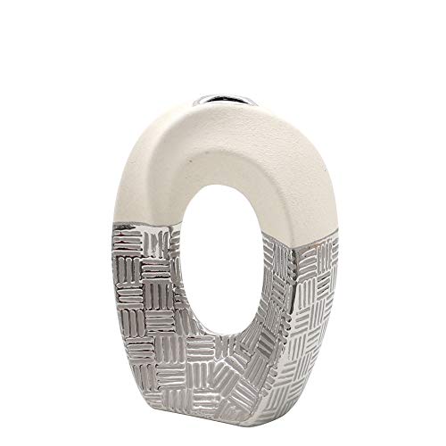 Dekohelden24 Ädel modern dekorativ designer keramisk vas rund böjd med hål i silver-grå vit, ca 16 x 8 x 23 cm 23 cm