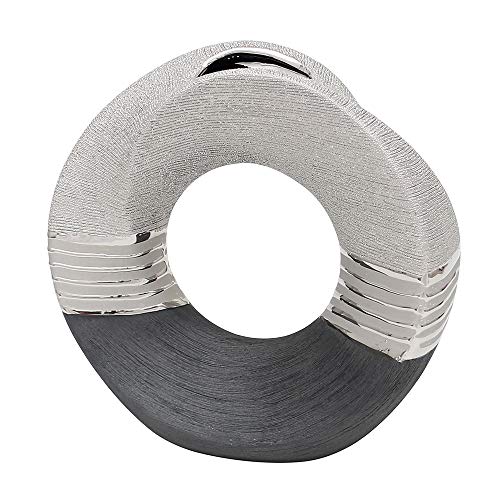 Dekohelden24 Ädel modern dekorativ designer keramisk vas rund böjd med hål i silvergrå, 23 cm
