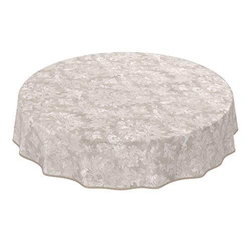 Home Direct Rund vaxduk PVC avtorkningsbar bordsduk 160 cm (62 tum) löv beige