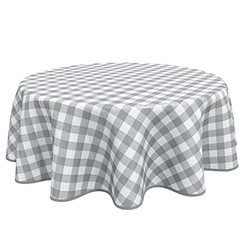 Rund vaxduk i PVC, avtorkningsbar bordsduk, bordsskydd, gingham-rutig, 160 cm (62 tum) ljusgrå
