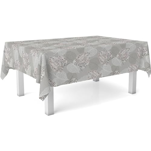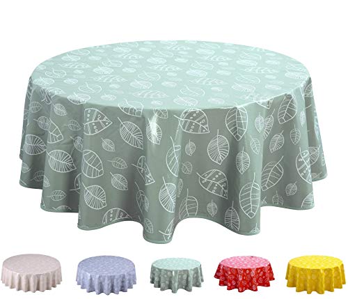 Home Direct Rund vaxduk PVC avtorkningsbar bordsduk 160 cm (62 tum) löv ljusgrå