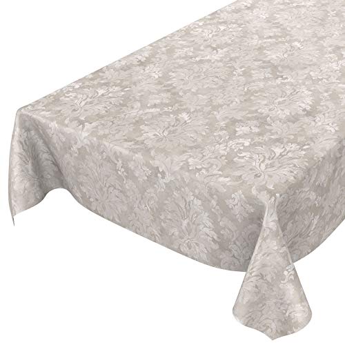 Vaxduk tvättbar trädgårdsduk vaxduk rund oval kantig inomhus utomhus barock rankmönster ljusgrå beige 100 x 140 cm med fåll – kantad