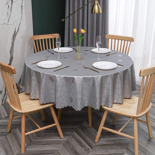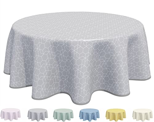 Home Direct Rund präglad vaxduk i PVC, avtorkningsbar bordsduk, bordsskydd, 140 cm (55 tum), ljus blekgrå