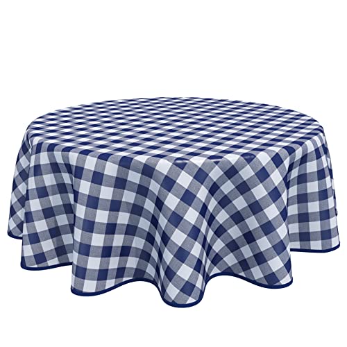 Rund vaxduk i PVC, avtorkningsbar bordsduk, bordsskydd, gingham-rutig, 160 cm (62 tum) blå