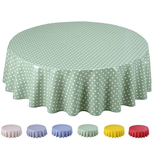 Home Direct rund vaxduk PVC avtorkningsbar bordsduk 160 cm 157,5 cm liten prickig salviagrön
