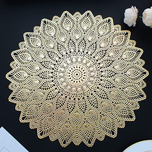 Mabbcoo Runda bordstabletter i set om 6, ihåliga blommor, bordsunderlägg för matbord, pressad vinyl, blommande blad, bordsmattor för semester, fest, bröllop, accent, bordsdekoration, guld